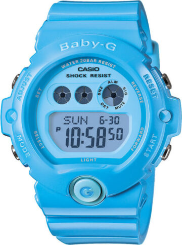 Модель жіночого годинника BG-5601-7E колекції Casio Baby-G має корпус квадратної форми виконаний з полімеру, з циферблатом рожевого кольору та електронними цифрами захищеним мінеральним склом. Пластиковий ремінець білого кольору, електронний механізм. Додаткові функції: Удароміцні, Повністю автоматичний календар, Світовий час, 12/24 годинний формат часу, Електролюмінесцентне підсвічування, Секундомір, Таймер зворотного відліку, Будильник, Функція повтору сигналу, Увімкнення/вимкнення звуку. У цьому годиннику можна плавати і пірнати на невелику глибину до 3-5 метрів.