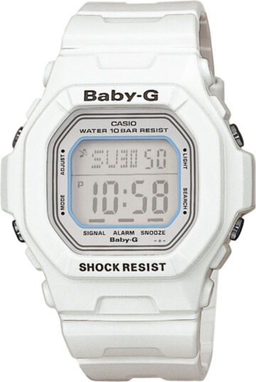Модель жіночого годинника BG-5604-5E колекції Casio Baby-G має корпус квадратної форми виконаний з полімеру, з циферблатом сірого кольору та електронними цифрами захищеним мінеральним склом. Пластиковий ремінець чорного кольору, електронний механізм. Додаткові функції: Удароміцні, Повністю автоматичний календар, Світовий час, 12/24 годинний формат часу, Електролюмінесцентне підсвічування, Секундомір, Таймер зворотного відліку, Будильник, Функція повтору сигналу. У цьому годиннику можна плавати і пірнати на невелику глибину до 3-5 метрів.