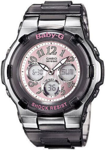Годинник Baby-G у новому весняному образі. Поєднують у собі стильний зовнішній вигляд та технологічну досконалість 21 століття. Циферблат підсвічується світлодіодом. Світлонакопичувальне покриття необритий продовжує світитися в темряві навіть після нетривалого перебування на світлі. Протиударний корпус захищає механізм від ударів та вібрації. Світовий час – 48 міст (31 часовий пояс), всесвітній координований час (UTC). Функція увімкнення/вимкнення літнього часу. 12-ти та 24-х годинний формат часу. Лічильник – дозволяє вести рахунок до 999 об’єктів чи подій. Секундомір з точністю показань 1/100с та часом вимірювання 1ч. Спліт-хронограф. Таймер зворотного відліку від 1хв до 24ч. Функція переміщення стрілок. Функція увімкнення/вимкнення звуку.