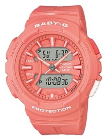 Наручний годинник Baby-G Step Tracker з крокоміром ідеально підходить для активних жінок, які не хочуть нехтувати модними трендами. Протиударний корпус захищає механізм від зовнішніх впливів, а яскраве подвійне світлодіодне підсвічування забезпечує постійне освітлення дисплея і циферблата. Світлонакопичувальне покриття продовжує світитися навіть за нетривалого перебування на світлі. Крокомір автоматично відраховує кількість кроків і показує графічне відображення пройдених кроків за останні 5 годин. Встановлення мети в діапазоні від 1000 до 50 000 кроків і підказки щодо активності допоможуть вам стежити за своїм здоров’ям. Годинник підтримує два часових пояси, 12-ти і 24-х годинний формат часу, а також секундомір з двома точностями показань.