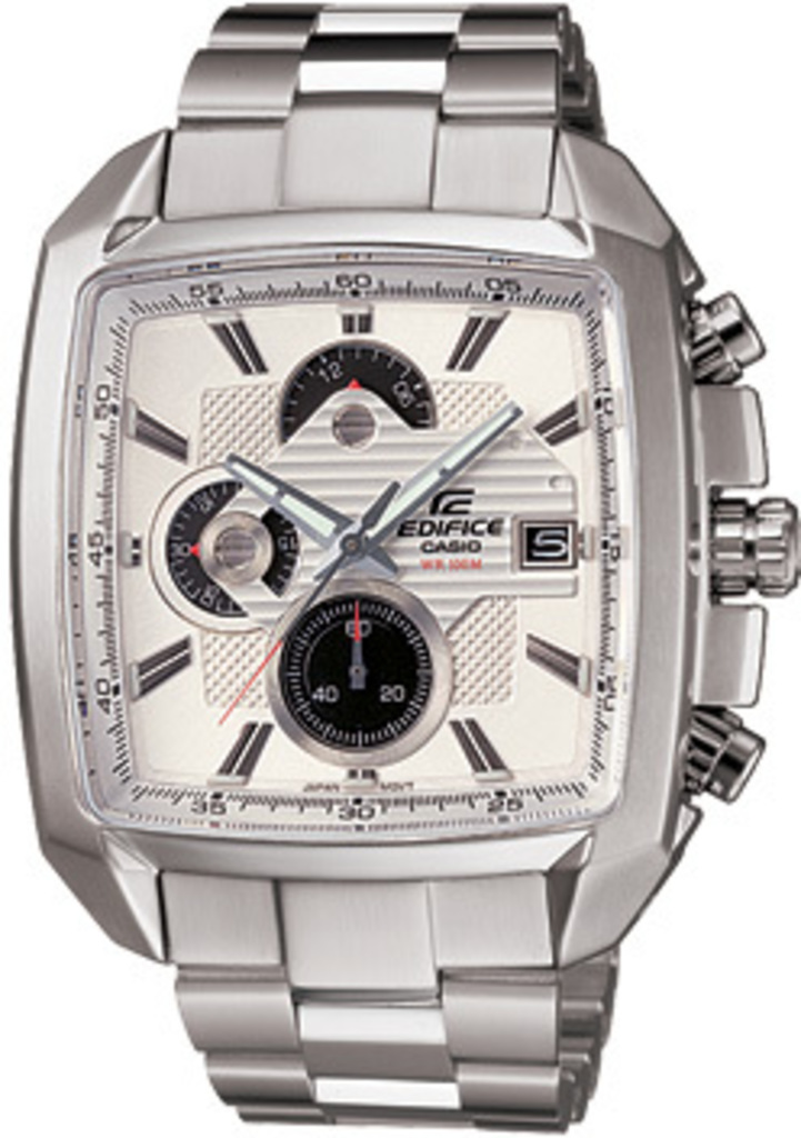 Модель чоловічого годинника EF-549D-7A колекції Casio Edifice має корпус “бочкової” форми виконаний з нержавіючої сталі, з циферблатом білого кольору та індексами захищеним мінеральним склом. Сталевий браслет, хронограф кварцовий. А додаткова функція дати надає зручності. У цьому годиннику можна плавати і пірнати на невелику глибину до 3-5 метрів.
