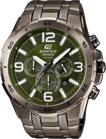Чорний циферблат, що гільошує. Корпус та браслет виготовлені з нержавіючої сталі, покритої чорним PVD-покриттям. Орієнтовний термін служби батареї – 2 роки. Стрілки мають люмінесцентне нанесення. Складання даної моделі проводилося на сертифікованому заводі Casio, що знаходиться в Китаї. Індикація – арабські цифри.