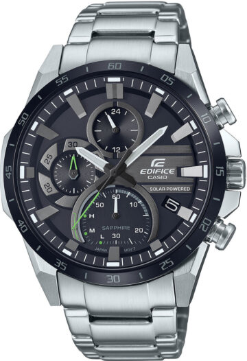 Годинники Casio виробляються на сертифікованому заводі в Китаї. Корпус і браслет виконані з міцної нержавіючої сталі. На чорному циферблаті розташовуються годинникові мітки, дата, день тижня, хронограф і тахіметрична шкала. Стрілки годинника мають люмінесцентне покриття, яке забезпечує їхнє тривале світіння в темряві. Мінеральне скло надійно захищає механізм годинника від виникнення подряпин. Власникам цього годинника надається можливість плавати з ним на глибину до 100 метрів.