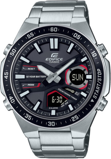 Цей чоловічий годинник Casio Edifice з нержавіючої сталі зі сріблястим корпусом і шкіряним ремінцем являє собою стильний і надійний аксесуар. Він оснащений аналоговим і цифровим індикатором, а також має безліч функцій, включно з датою, другим часом, таймером, днем тижня, автоматичним календарем, індикацією місяця, секундоміром і будильником. Вони міцні та водонепроникні до 100 WR. Гарантія 24 місяці.