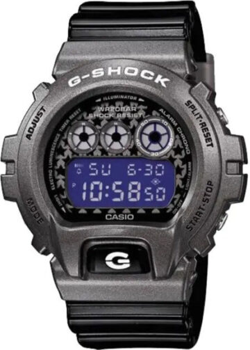 Довгоочікувані джишоки в матовому корпусі DW-6900 сірого кольору – це ідеальне рішення для людей, яким необхідно щодня ухвалювати рішення і досягати результатів. Особливістю цієї моделі є двошаровий ремінець: звичайний (під колір корпусу) зовні і синій зсередини. Унікальна ударостійка конструкція захищає механізм годинника від пошкоджень під час ударів і механічних впливів. Завдяки електролюмінесцентній панелі, що забезпечує освітлення всього циферблата, зчитування даних дуже зручне. У годиннику є функція післясвітіння – підсвічування працює ще кілька секунд після того, як ви натиснули на кнопку підсвічування. Для більшої точності в годиннику передбачені будильники, один з яких має функцію повтору, а також таймери зворотного відліку, які видають звуковий сигнал у встановлений час. Час налаштовується від 1 секунди до 24 годин.