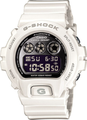 Модель чоловічого годинника DW-6900NB-1E колекції Casio G-Shock має корпус круглої форми виконаний з полімеру, з циферблатом чорного кольору та електронними цифрами захищеним мінеральним склом. Пластиковий ремінець чорного кольору, електронний механізм. Додаткові функції: Удароміцні, Повністю автоматичний календар, 12/24 годинний формат часу, Електролюмінесцентне підсвічування, Секундомір, Таймер зворотного відліку, Будильник. Ця модель годинника підходить для дайвінгу.