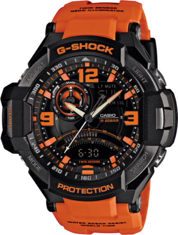 Харизматична модель G-Shock із серії GA-100 з гранжовим ALLROUND-принтом чорного кольору у вигляді потрісканої висушеної землі. Щоб додати принту реалістичності в Casio вперше застосували подібну техніку: спочатку корпус і ремінець годинника повністю заливали фарбою, після чого лазером випалювали місця “тріщин”. Подібна технологія дозволила створити вкрай реалістичний принт, що розтріскався. Але не варто турбуватися, новий візуальний вигляд годинника не вплинув на їхню неперевершену протиударність і невбивність. Годинник, що становить популярну колекцію Casio G-Shock- це кращий спортивний годинник, створений для справжніх любителів активного та спортивного способу життя. Годинник з цієї колекції має водозахист, який становить 200 м. Протиударний полімерний корпус надійно захищає наручний годинник від будь-яких зовнішніх впливів. Годинник оснащений рядом різних функцій, таких як другий часовий пояс, автоматичний календар, таймер, секундомір та будильник. Деякі моделі можуть мати сонячну батарею та місячний календар. Підсвічування дозволяє орієнтуватися у часі у час.