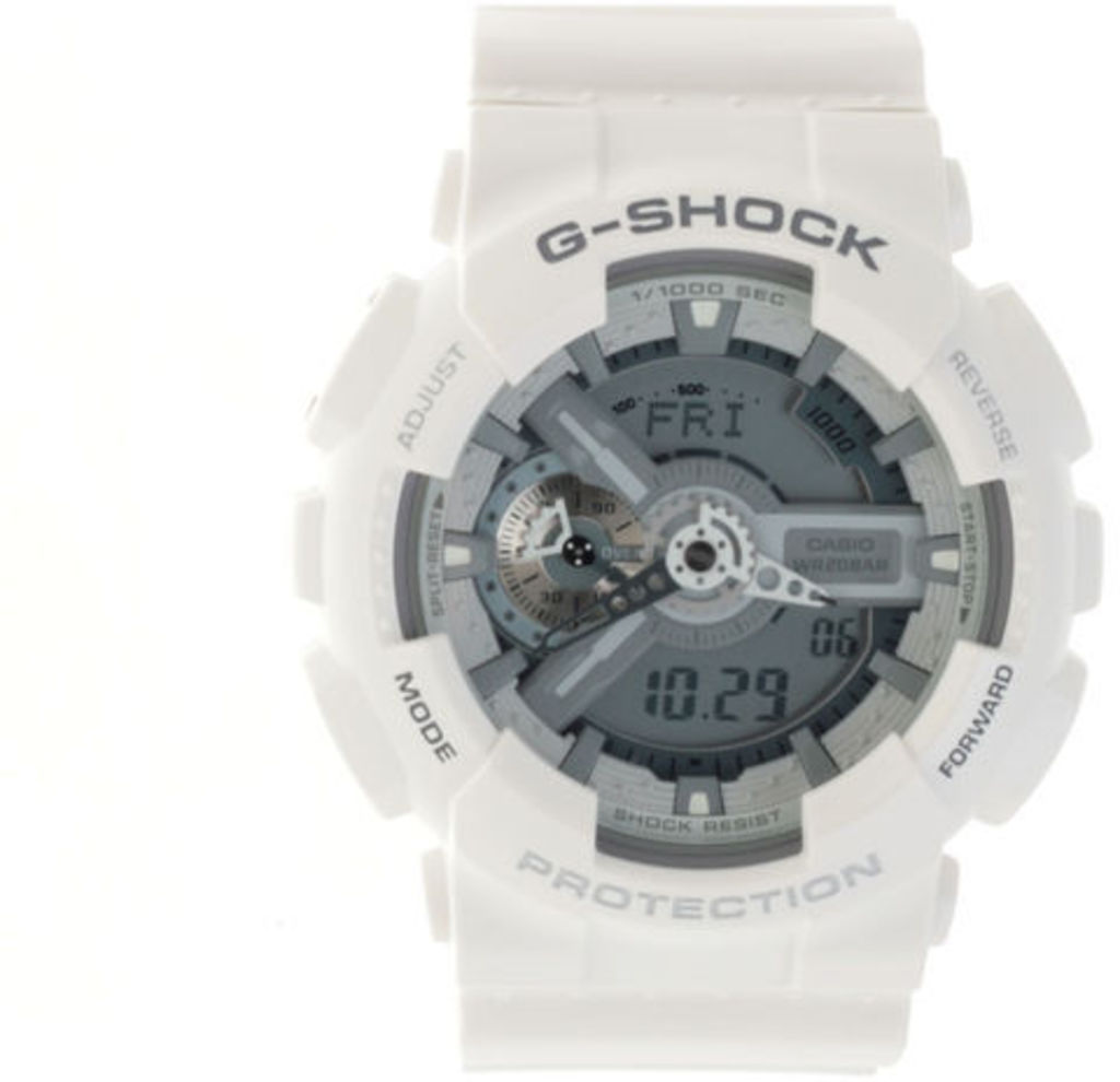 Для любителів активного способу життя і спортсменів уже давно не стоїть питання вибору наручних хронографів. Усе, про що можна тільки мріяти, вже давно втілено в спортивних моделях компанії Casio та їхніх спортивних лінійках. Casio GA-110C-7AER – одна з найбільш затребуваних моделей з колекції G-Shock. На перший погляд у них немає нічого примітного, крім масивного корпусу, виконаного з міцного пластику білого кольору і полімерного ремінця в тон. Але все найцікавіше криється всередині цієї кварцової моделі. Перша і основна перевага – протиударні властивості. Навіть падіння з велосипеда, пройде для цього годинника непоміченим. Магнітостійкість так само має велике значення і забезпечує безперебійну роботу механізму в будь-якій точці світу. Годинник Casio GA-110C-7AER оснащений таймером, кількома будильниками, підсвічуванням і світовим часом. Особливості конструкції дають змогу занурюватися в них на глибину до 200 м. Циферблат відображає дані в аналоговому форматі та цифровому. Ця модель стане не тільки Вашим надійним, але й стильним супутником у найнеймовірніших подорожах.