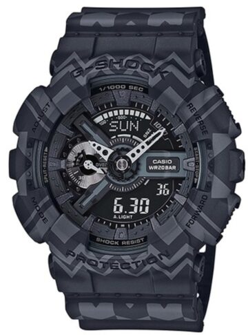 Модель GA-110HR-1AER виконана з полімеру, корпус годинника має такі габарити 55,0×51,2×16,9 мм, задня кришка на гвинтах і виконана з медичної сталі. По обидва боки корпусу розміщені кнопки керування функціями годинника, самі кнопки мають шорстку поверхню, для уникнення зісковзування пальців під час натискання. Мінеральне скло глибоко втоплене, таке конструктивне рішення захищає його під час падінь і зводить до мінімуму появу подряпин під час повсякденного носіння. Годинник має комбіновану систему відображення часу, в центрі знаходяться хвилинна і годинникова стрілки, основна інформація виводитися на монохромний екран. Серед представлених функцій в годиннику є, автоматичне підсвічування, світовий час, секундомір (вимірює до 1/1000), таймер, 5 незалежних звукових сигналів, функція повтору сигналу, календар, 12/24 формат відображення часу. Ремінець так само як і корпус годинника, виготовлений з полімеру, зовнішня його частина має чорний колір, а внутрішня сторона червоного кольору, застібка класична, виготовлена з медичної сталі. Водозахист становить 20 атм, годинник відмінно почуває себе навіть при зануреннях на глибину до 20 метрів.