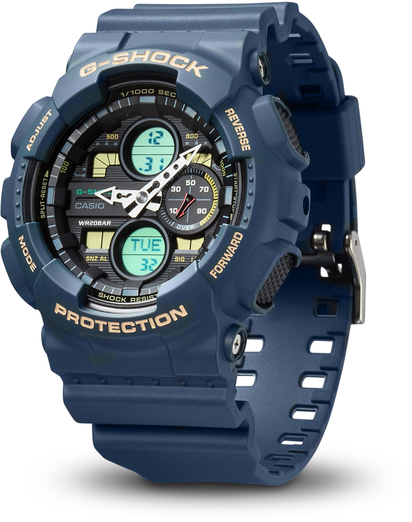 Від падінь, ударів, води, бруду та пилу Вас захищатиме годинник із серії G-SHOCK від фірми CASIO. Вони призначені для повсякденного використання та активних спортивних занять. Також вони оснащені спеціально розробленим технологічним японським механізмом, який надає надійний захист від ударів. До складу моделі входять стандартні функції: секундомір, таймер зворотного відліку часу, дня тижня, дати та світового часу, 5 різних сигналів будильника та автоматичне підсвічування. Корпус і ремінець із міцних полімерних матеріалів та висока водонепроникність до 20 АТМ допоможуть зберегти ваш годинник у надійному стані в будь-якому середовищі.