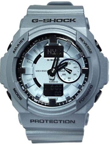 Модель чоловічого годинника GA-150A-3A колекції Casio G-Shock має корпус круглої форми виконаний з полімеру, з циферблатом зеленого кольору та індексами захищеним мінеральним склом. Пластиковий ремінець зеленого кольору, кварцовий + електронні механізми. Додаткові функції: Удароміцні, Повністю автоматичний календар, Світовий час, 12/24 годинний формат часу, Світлодіодне авто-підсвічування, Секундомір, Таймер зворотного відліку, Будильник, Функція повтору сигналу, Магнітостійкі. Ця модель годинника підходить для дайвінгу.