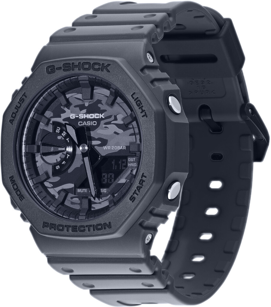 Годинник, який пройде з вами весь шлях від дикої природи до центру міста, у правильних кольорах, що пасуватимуть для будь-якого місця. З оригінальним камуфляжним візерунком G-SHOCK на циферблаті.
