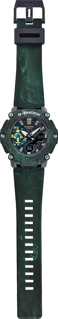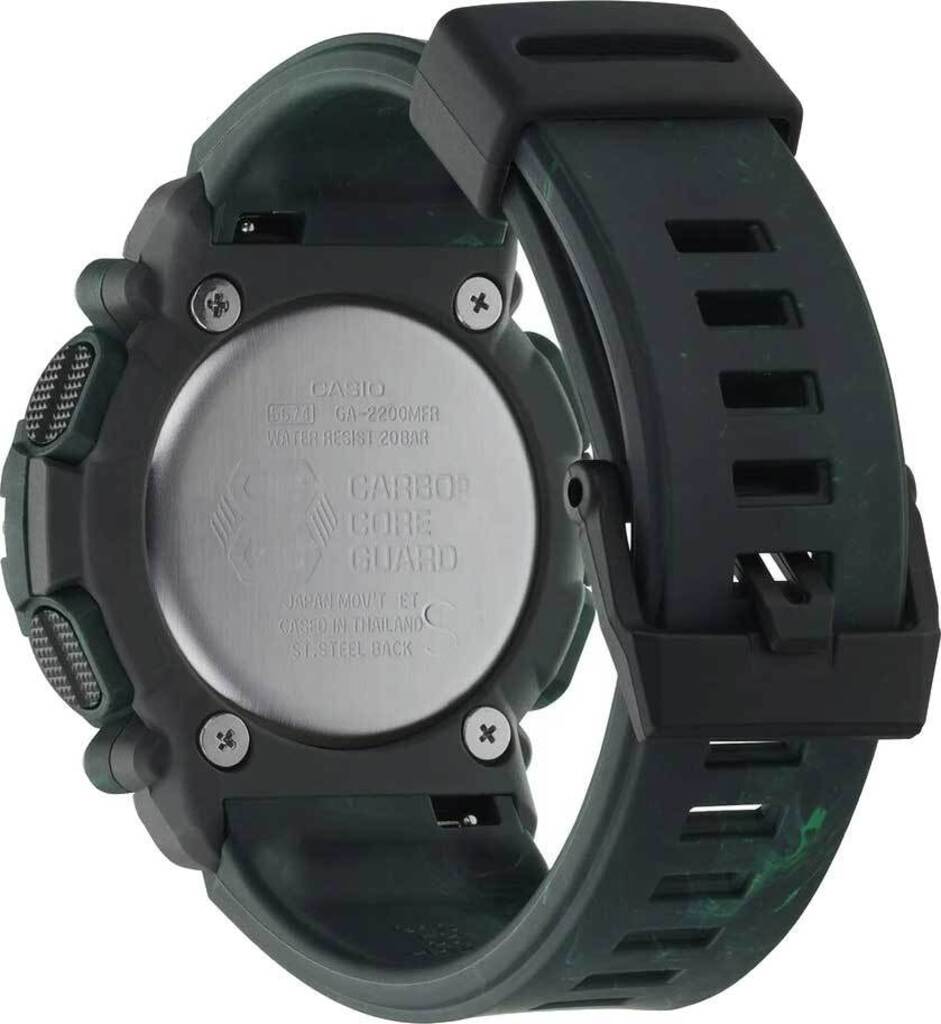 Надійний годинник GA-2100 з глибоким і об’ємним циферблатом ідеально підходить для любителів активного способу життя. Він виконаний у неповторному кольорі, натхненному лісом, і має великий протиударний пластиковий корпус із карбоновими волокнами, що роблять його міцнішим і легшим. Подвійне світлодіодне підсвічування дає змогу бачити в повній темряві аналоговий і цифровий дисплей. Необритове світлонакопичувальне покриття забезпечує тривале післясвітіння. Також годинник оснащений секундоміром, таймером зворотного відліку і функцією світового часу. Це ідеальний вибір для людей, яким потрібно бути завжди в курсі часу!