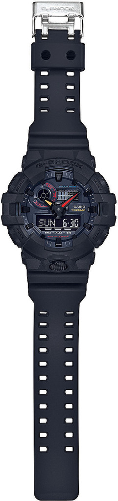 Новинка CASIO GA-700BMC-1AER пропонує неймовірний дизайн, переосмислений з урахуванням стилю та атмосфери Токіо. Яскраві кольори та елементи на циферблаті надають цьому годиннику унікального вигляду. Натискання на кнопку підсвічування дає змогу освітити циферблат білим світлом. Надійність, ударостійкість і водонепроникність G-Shock роблять цей годинник ідеальним вибором для активного способу життя. Їхній функціонал містить секундомір, таймер зворотного відліку, 5 будильників, календар, світовий час, 12-ти і 24-годинний формат часу, автопідсвітку і функцію зміщення стрілок. Мінеральне скло захищає механізм від пошкоджень, а полімерний матеріал ремінця та корпусу забезпечує міцність і гнучкість. Акумулятор забезпечує живлення механізму до 5 років. Це ідеальний варіант для тих, хто ще не має G-Shock.
