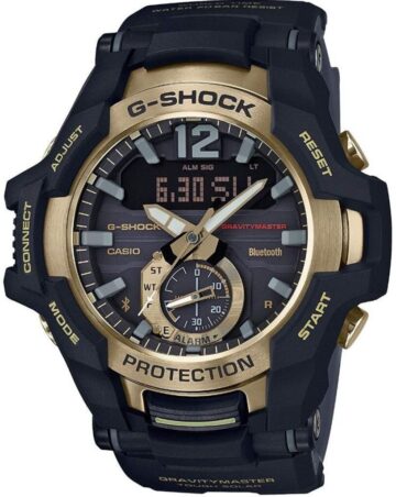 Елегантний чоловічий годинник CASIO G-Shock з нержавіючим корпусом і рожевим золотим браслетом має мінеральне скло, аналогово-цифрову індикацію і безліч функцій: будильник, секундомір, дата, Bluetooth, таймер, підсвічування та ін. Гарантія 24 місяці.