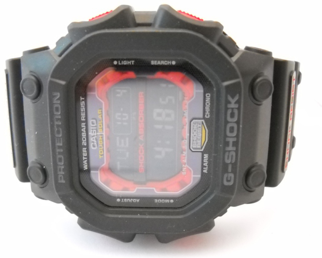 Корпус виготовлено з міцного пластику, він володіє протиударними якостями, водночас конструкцію продумано таким чином, щоб всередину не потрапляла не лише вода, але й бруд. Батарея Casio GX-56-1AER живиться від сонячної енергії і ніколи не підведе, оскільки індикатор живлення батареї попередить про низький рівень заряду заздалегідь. З цією моделлю на зап’ясті ви можете не хвилюватися про те, що не встежите за часом у будь-якій точці світу, оскільки вони оснащені функцією світового часу.