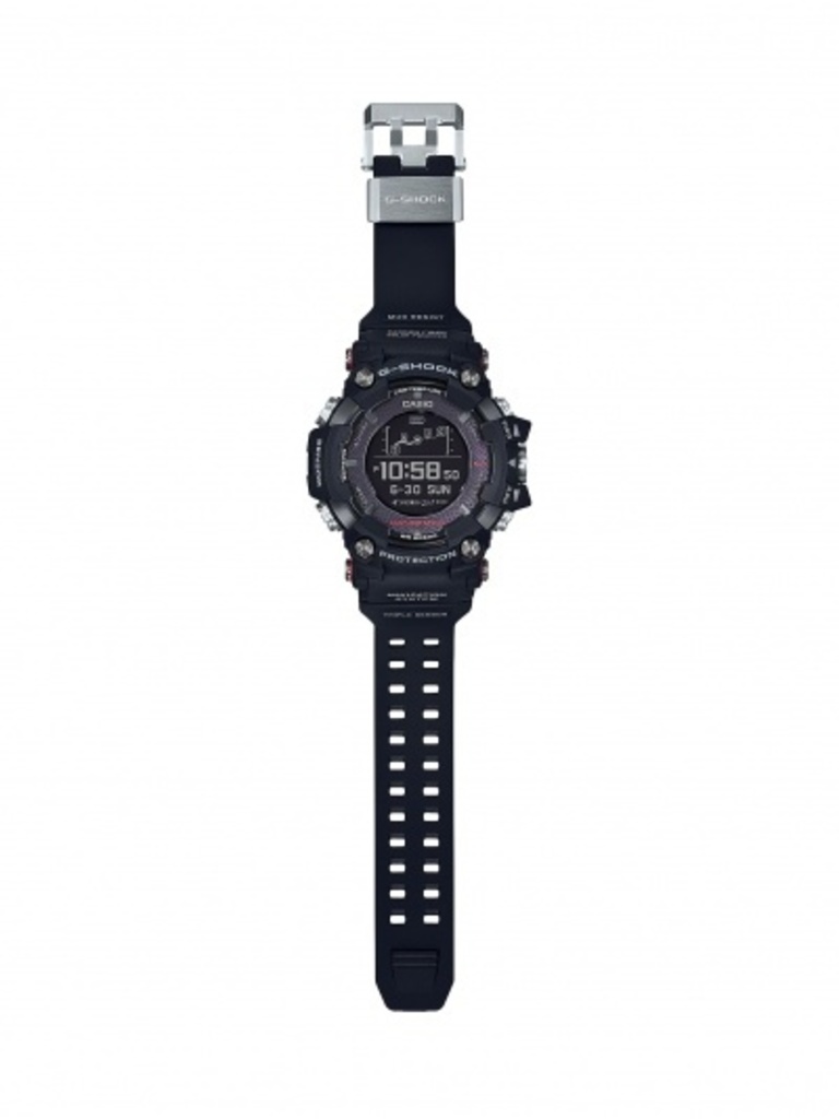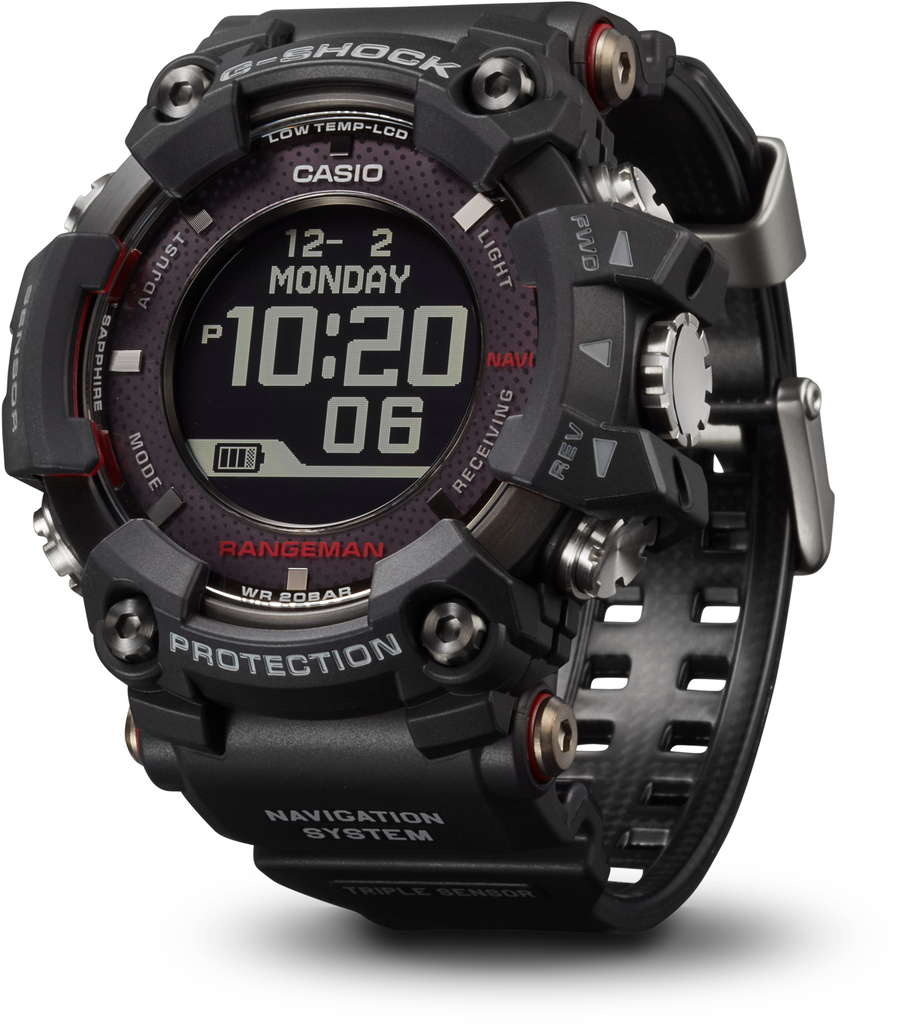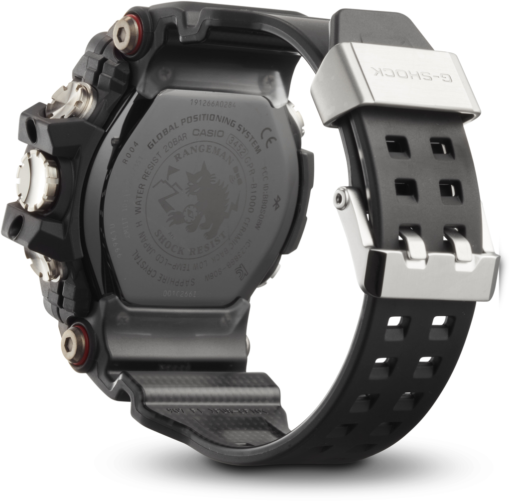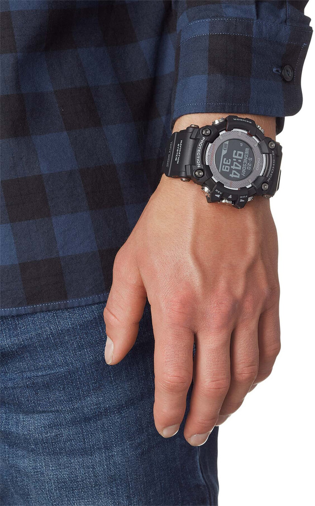Чоловічий Годинник Casio G-SHOCK GPR-B1000-1E RANGEMAN GPS. Нове доповнення колекції Rangeman «розумним» годинником з GPS навігацією підійде як для професійних військових, так і для любителів екстремальних пригод. Rangeman GPS Navigation. Протиударний корпус захищає механізм від ударів та вібрації. Захист від потрапляння всередину пилу. Модуль годинника розрахований на роботу при низьких температурах. Живлення від сонячної енергії Tough Solar – сонячні батареї великої потужності, індикатор заряду батареї. Бездротовий зарядний пристрій. Функція автоматичного збереження енергії. Час роботи акумулятора без підзарядки: 33год (короткочасні включення GPS), 20год (тривалі прийоми GPS сигналу), 2 місяці (використання інших функцій, без GPS), при включеній функції збереження енергії до 29 місяців. Циферблат підсвічується яскравим світлодіодом. Вбудований GPS датчик визначає часовий пояс та точний час. Функції GPS навігації: відображення траєкторії руху, встановлення пункту призначення, функція повернення назад. Синхронізація зі смартфоном через Bluetooth®. При підключенні до смартфону годинник коригує поточний час. Функція пошуку телефону. Авіарежим – годинник перемикається в режим офлайн натисканням кнопки. Світовий час – 39 міст (39 часових поясів), всесвітній координований час (UTC). Автоматичний перехід на зимовий та літній час. Час сходу та заходу Сонця. Відображення віку та фази Місяця. Графічне відображення відомостей про припливи та відливи. 12-ти та 24-х годинний формат часу. Термометр від -10° до +60°З точністю 0,1°C. Барометр – вимірювання атмосферного тиску від 260 до 1100 гПа (від 195 до 825 мм рт. ст.). Вбудований цифровий компас. Діапазон вимірювання від 0 ° до 359 ° з точністю 1 °. Висотомір – вбудований датчик барометричного тиску з можливістю виведення результатів в одиницях висоти над рівнем моря (від -700 до 10000 метрів). Пам’ять на 60 записів про точки проходження маршруту, можливість отримати доступ до них у будь-який час. Кожен із цих записів складається з виміряної абсолютної висоти, довготи, широти, температури та атмосферного тиску, а також дати та часу. Система Smart Access за допомогою електронної заводної головки забезпечує простий та зручний доступ до всіх важливих функцій годинника. Натискання або поворот заводної головки дозволяє перемикатися між різними режимами та активувати будильник, таймер, секундомір, а також налаштовувати функцію світового часу. Секундомір з точністю показань 1с та часом вимірювання 1000год. Таймер зворотного відліку від 1хв до 24ч. Заводна головка із захистом. Сталевий безель з IP покриттям. Керамічна задня кришка. Функція вимкнення/увімкнення звуку. Пластиковий ремінець армований карбоновою вставкою для підвищення міцності.