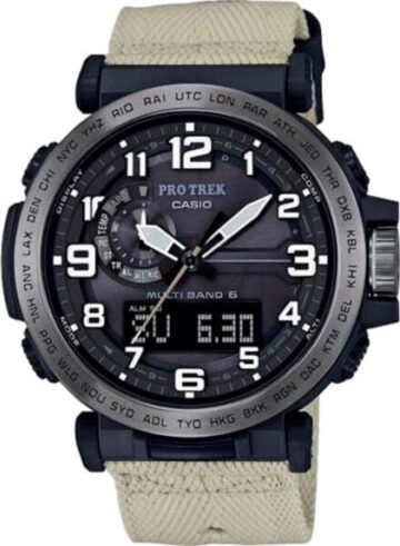 “протиударні, світлодіодне автопідсвічування, “”Smart Access”” (активна електронна заводна голівка), необрит, приймання радіосигналу, світовий час, компас, альтиметр, барометр, термометр, відображення таблиці припливів-відпливів, 1/100-з секундомір, таймер, 5 будильників, календар, живлення від сонячної батареї, ремінець з полімерного матеріалу, розміри корпуса – 44.9х55.8×16.2 мм, вага 101 гр.”