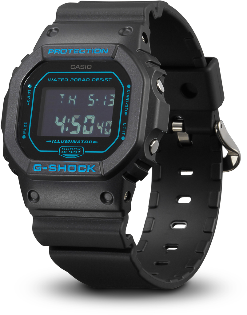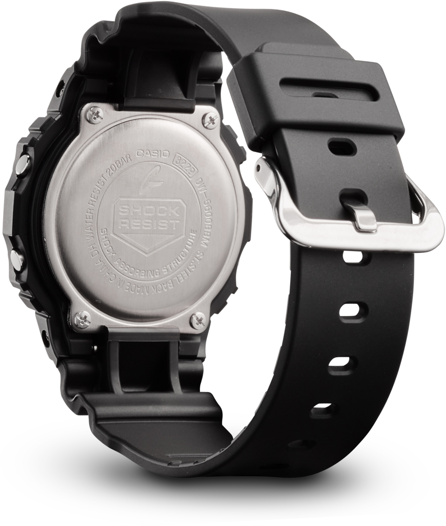 DW-5600BBM-1ER, з колекції G-SHOK від японського годинникового гіганта CASIO, являє собою незаперечно цікаву модель. Вона випущена у квадратному ретро-корпусі, як і перші вироби цієї серії, і припаде до душі справжнім поціновувачам стилю G-SHOK. Корпус годинника виготовлено з високотехнологічного полімеру чорного кольору, який має міцність і легкість. Циферблат годинника захищений мінеральним склом, яке стійке до ударів. Водостійкість годинника становить 200 WR, що дасть змогу власнику займатися дайвінгом. На годиннику встановлено безліч корисних функцій, включно з будильником, таймером і секундоміром, а також діодним підсвічуванням, яке дасть змогу легко зчитувати інформацію навіть у темний час доби.