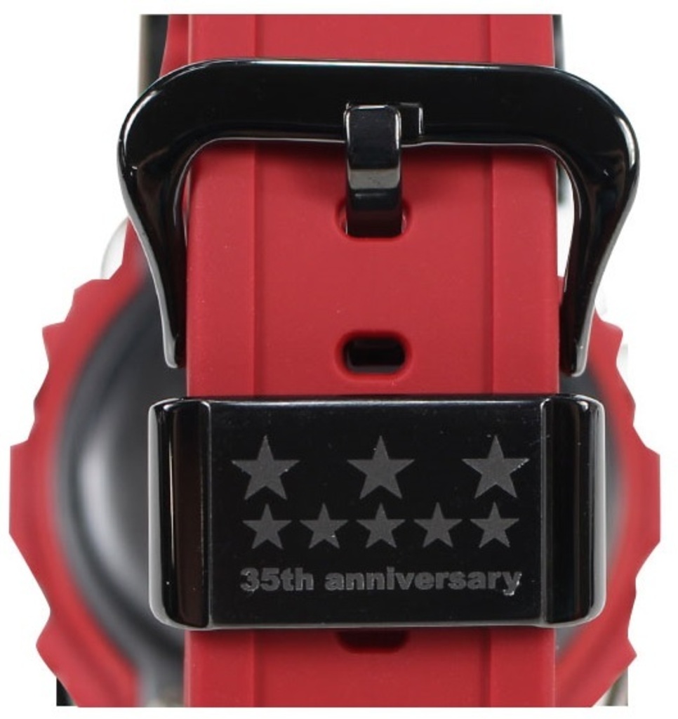 Відзначайте 35-річний ювілей бренду Casio з колекцією Red Out! Вона представлена в класичному корпусі 5600, виготовленому з матеріалу з іонним напиленням чорного кольору. На задній кришці та тримачі ременя вигравірувані фірмові зірки, художника і партнера Casio – Еріка Хейза, а також напис “Since 1983”, що нагадує про дату народження бренду. Нова технологія забарвлення робить матеріал максимально матовим і надає виробу індивідуальності. Крім того, вона оснащена функціями протиударності, 200м водозахисту, електроюмінесцентним підсвічуванням, секундоміром, будильником, таймером і календарем.