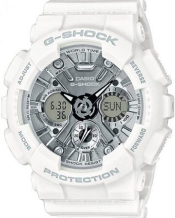 Нова компактна модель із серії G-SHOCK. Культовий дизайн моделі 5600 тепер і в сталевому позолоченому корпусі. Компактний і зручний в носінні годинник. Дзеркальна поверхня корпусу чудово поєднується з білим ремінцем. Мінеральне скло встановлене в корпус має відмінну міцність. Годинник G Shock, розроблений спеціально для відважних авантюристів і любителів адреналіну, захищений від ударів, має фантастичну міцність і багатофункціональність, включно з функцією хронографа, таймера, календаря, будильника, водонепроникність 20 бар. У годиннику можна плавати і занурюватися під воду.