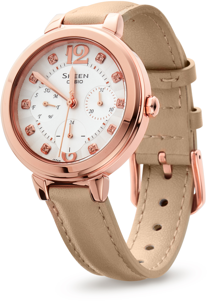 Оздоблений кристалами годинник – ідеальна прикраса для вашого образу. Надійне світлонакопичувальне покриття забезпечує тривале післясвітіння в темряві навіть після короткочасного перебування на світлі. Відображення часу в 12 або 24-годинному форматі, а також циферблати для дати та дня тижня. Комфортний шкіряний ремінець із класичною застібкою. Цей годинник подарує вам неповторний стиль і вишуканість.