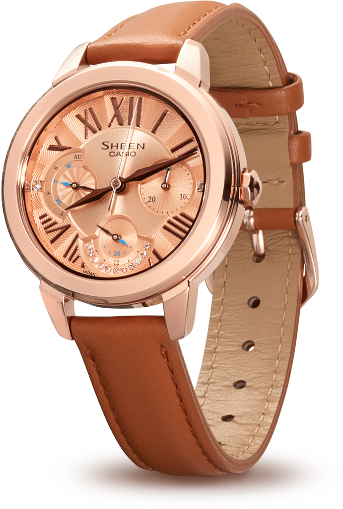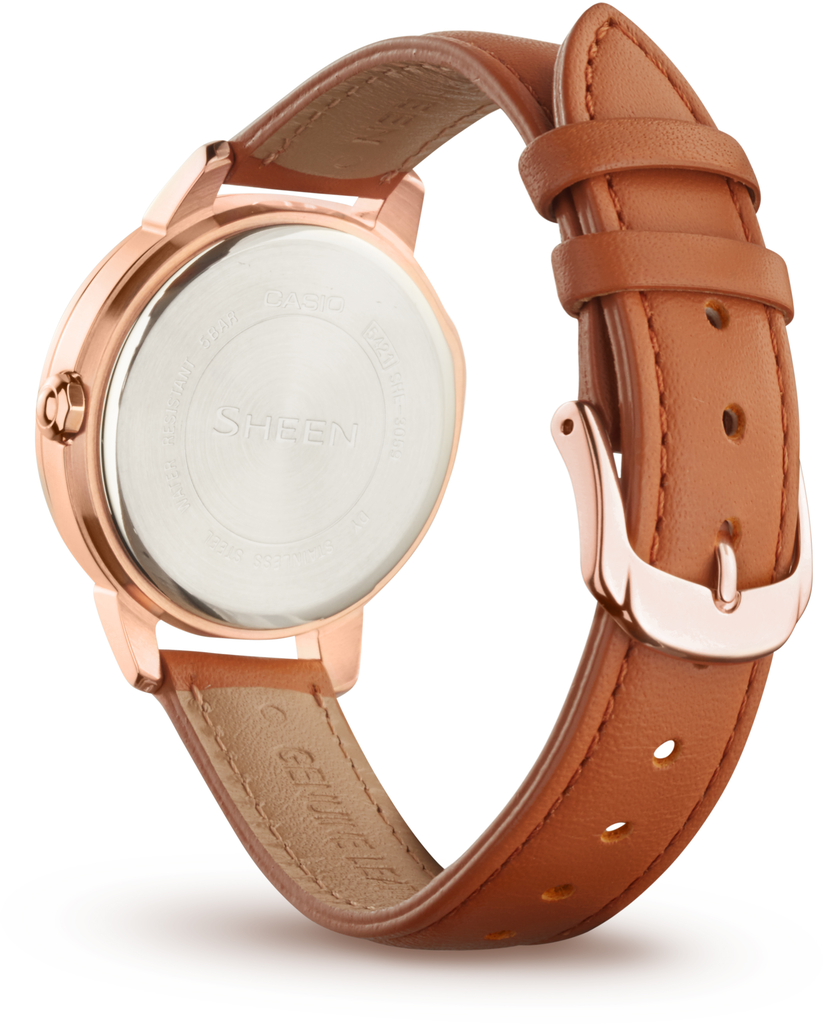 Годинник CASIO SHE-3059PGL-5AUER виготовлено з матеріалів найвищої якості, він є поєднанням модного дизайну та надійності. Він виконаний із золотистого металу з рожевою позолотою і має кварцовий механізм, встановлений в Японії. Золотистий циферблат з відображенням дати і дня тижня, великими стрілками і римськими позолоченими цифрами надає цьому годиннику неповторного вигляду. Мінеральне скло захищає циферблат і стрілки від пошкоджень, а бежевий ремінець з натуральної шкіри робить годинник дуже зручним у носінні. Також він має водозахист 3 бари, який забезпечує надійний захист механізму від вологи. Годинник CASIO SHE-3059PGL-5AUER – це ідеальне поєднання модного стилю і надійності.