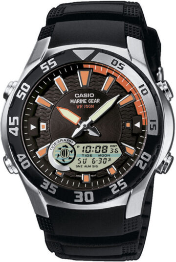 Складання даної моделі проводилося на сертифікованому заводі Casio, що знаходиться в Китаї. Пластиковий корпус чорного кольору. Комбінований ремінець чорного кольору. Світлий дисплей. Циферблат – чорний. Індикація – арабські цифри та мітки. Надпотужне світлодіодне підсвічування. Таймер зворотного відліку дозволяє засікати час від 1 хвилини до 24 годин. Секундомір вимірює з точністю до 1/100 секунд, 24 години межі вимірювання. Нотатник розрахований на 30 записів. На стрілках і мітках покриття необрите, яке забезпечує тривале свічення в темряві. Термін служби акумулятора приблизно 10 років. Застібка ремінця – пряжка.