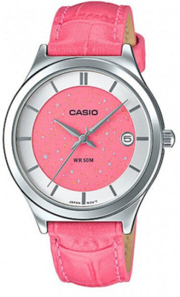 Цей модний аксесуар виготовлено на сертифікованому заводі Casio в Китаї. Він має корпус із латуні сріблястого кольору та чорний ремінець з екологічно чистої шкіри. Циферблат синього кольору, римські цифри та мітки для індикації. Необритове покриття моделі забезпечує тривале світіння в темряві. Акумулятор прослужить вам приблизно 3 роки. Застібка ремінця представлена пряжкою.
