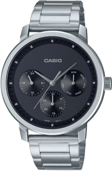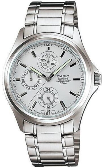 Збірка цієї моделі проводиться на сертифікованому заводі Casio, який знаходиться в Китаї. Корпус виконаний з латуні сріблястого кольору. Чорний шкіряний ремінець. Колір циферблата – чорний. Індикація – римські цифри. Приблизний термін служби акумулятора – 3 роки. Застібка ремінця – пряжка.