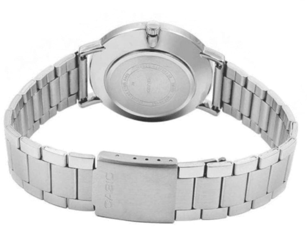 Цей годинник Casio вироблено на сертифікованому заводі в Таїланді, він має корпус і браслет з нержавіючої сталі. Циферблат має синій колір, а індикація представлена римськими цифрами і мітками. Акумулятор годинника служить близько трьох років, а застібка браслета обладнана подвійним згином.