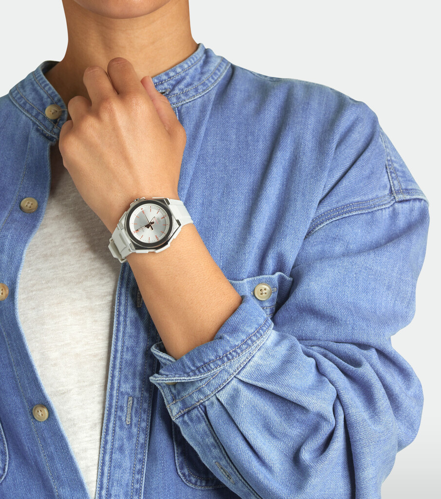 Ця модель годинника призначена для жінок, які ведуть активний спосіб життя. Корпус поєднує в собі міцність і легкість, завдяки матеріалам із пластику та сталі. Білий полімерний ремінець являє собою ідеальне рішення для повсякденного використання, чи то спорт, чи то прогулянки. Циферблат має сріблястий колір, а індикацію відзначають мітки. Стрілки покриті необритом, який забезпечує тривале світіння в темряві. Батарея має термін служби приблизно 3 роки. Водозахист дає змогу носити годинник навіть під час купання.