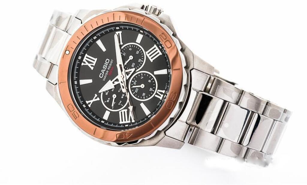 Модель чоловічого годинника MTD-1075D-1A2 колекції Casio Duro200 має корпус круглої форми виконаний з нержавіючої сталі, з циферблатом чорного кольору та римськими цифрами та індексами захищеним мінеральним склом. Сталевий браслет, кварцовий механізм. А додаткові функції: Календар (число, день тижня), 12/24 годинний формат часу надають зручності. У цьому годиннику можна плавати і пірнати на невелику глибину до 3-5 метрів.