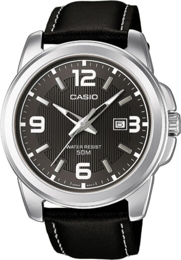 Елегантний чоловічий годинник CASIO з кварцовим механізмом з колекції Standard Analogue. Корпус з латуні сріблястого кольору, круглої форми, товщиною 9,4 мм і вагою 64 грами. Водонепроникність 50 WR. Білий циферблат з арабськими цифрами та індексами, аналогова індикація, індикація дати. Шкіряний ремінець. Гарантія 24 місяці.