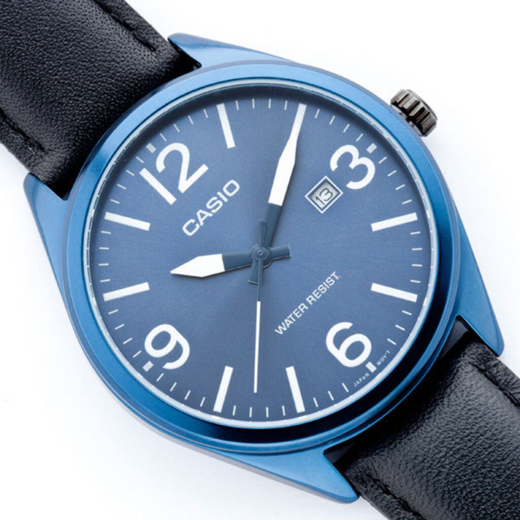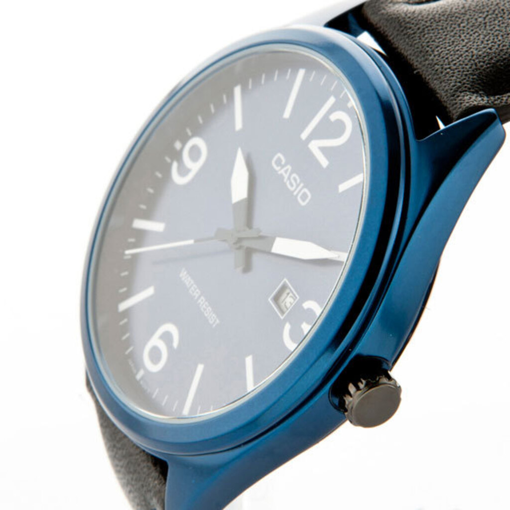 Модель чоловічого годинника MTP-1342L-2B колекції Casio Standart Analogue має корпус круглої форми виконаний з нержавіючої сталі з PVD, з циферблатом синього кольору та арабськими цифрами та індексами захищеним мінеральним склом. Шкіряний ремінець чорного кольору. Кварцовий механізм забезпечить точність ходу. А додаткова функція дати надає зручності. Годинник захищений від бризок, зокрема від дощу, але занурювати у воду його не можна.