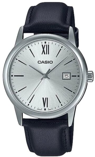 Наша модель виготовлена на сертифікованому заводі Casio, розташованому в Китаї. Корпус виготовлено з латуні сріблястого кольору, а шкіряний ремінець виконано в насиченому синьому кольорі. Циферблат має сріблястий відтінок, а індикація представлена римськими цифрами і мітками. Приблизний термін служби батареї становить 3 роки, а застібка ремінця представлена у вигляді пряжки.