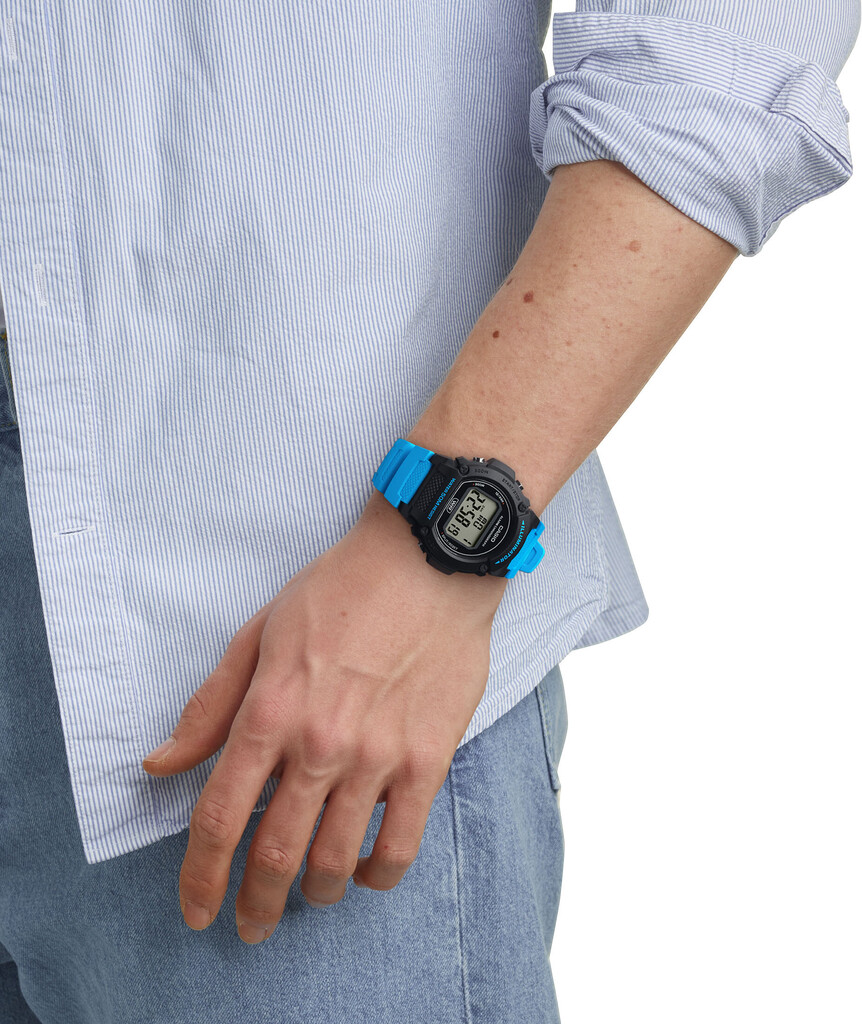 W-219H-2A2VEF якісний спортивний годинник із базовим функціоналом. Оснащений точним кварцовим механізмом, має яскраве світлодіодне підсвічування. Присутня функція секундоміра, а також будильник. Час відображається в подвійному форматі 12 і 24 години.Мають міцний полімерний корпус, виконаний у базовому чорному кольорі. Акцентний блакитний ремінець чудово доповнює їхній спортивний дизайн. Комфортна і стильна модель.